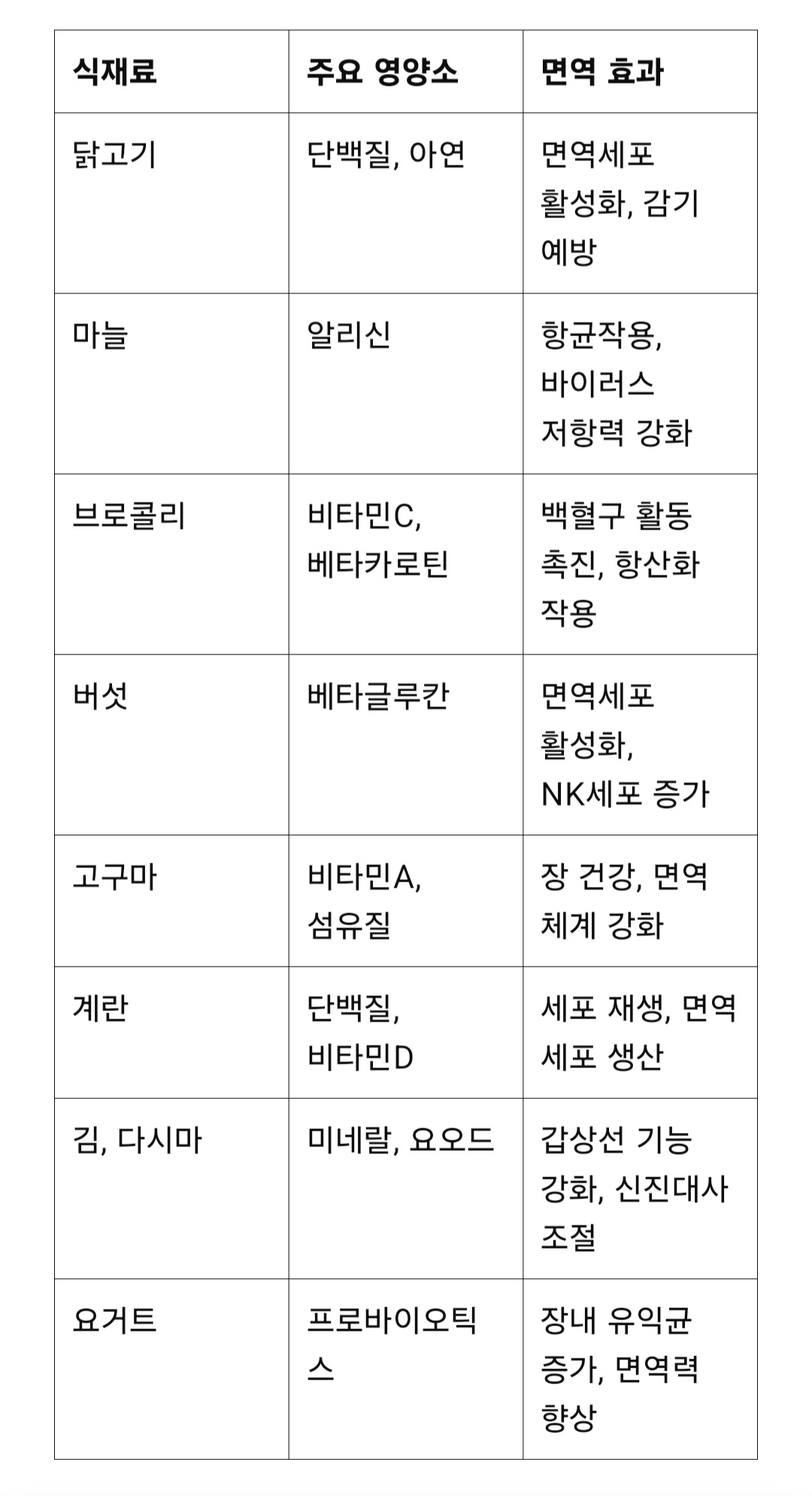 🌈1. 면역력 강화에 좋은 식재료 총정리